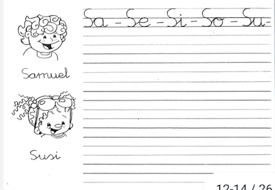 1. Escribiremos las palabras "Susi, Sali, Samuel y Sim" siguiendo la pauta adecuada.